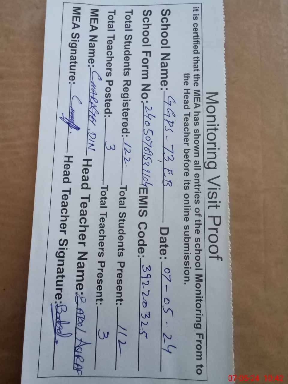 | EMIS Code: 39220325 | Name of School: GGPS 73 EB | |||