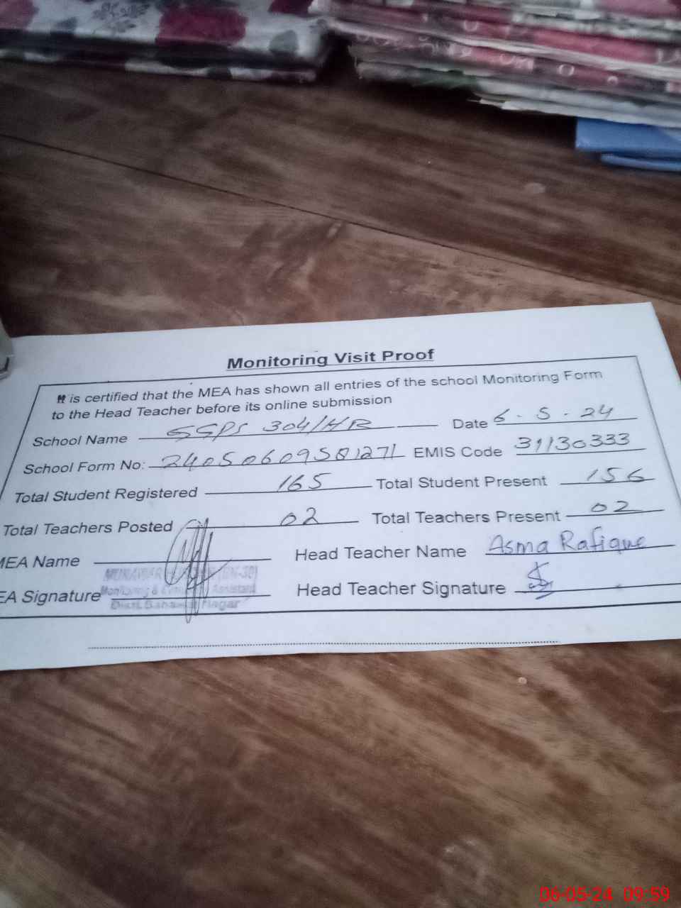 | EMIS Code: 31130333 | Name of School: GGPS CHAK NO 304 HR | |||