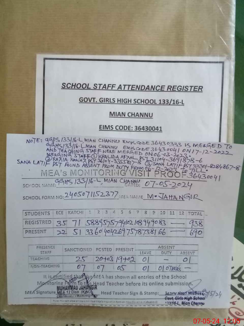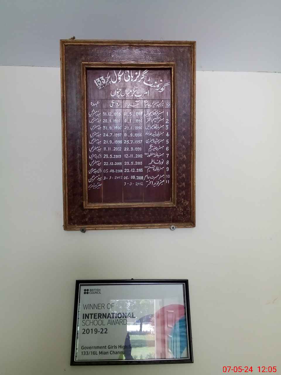 | EMIS Code: 36430041 | Name of School: GGHS 133/16-L, MIAN CHANNU | |||
