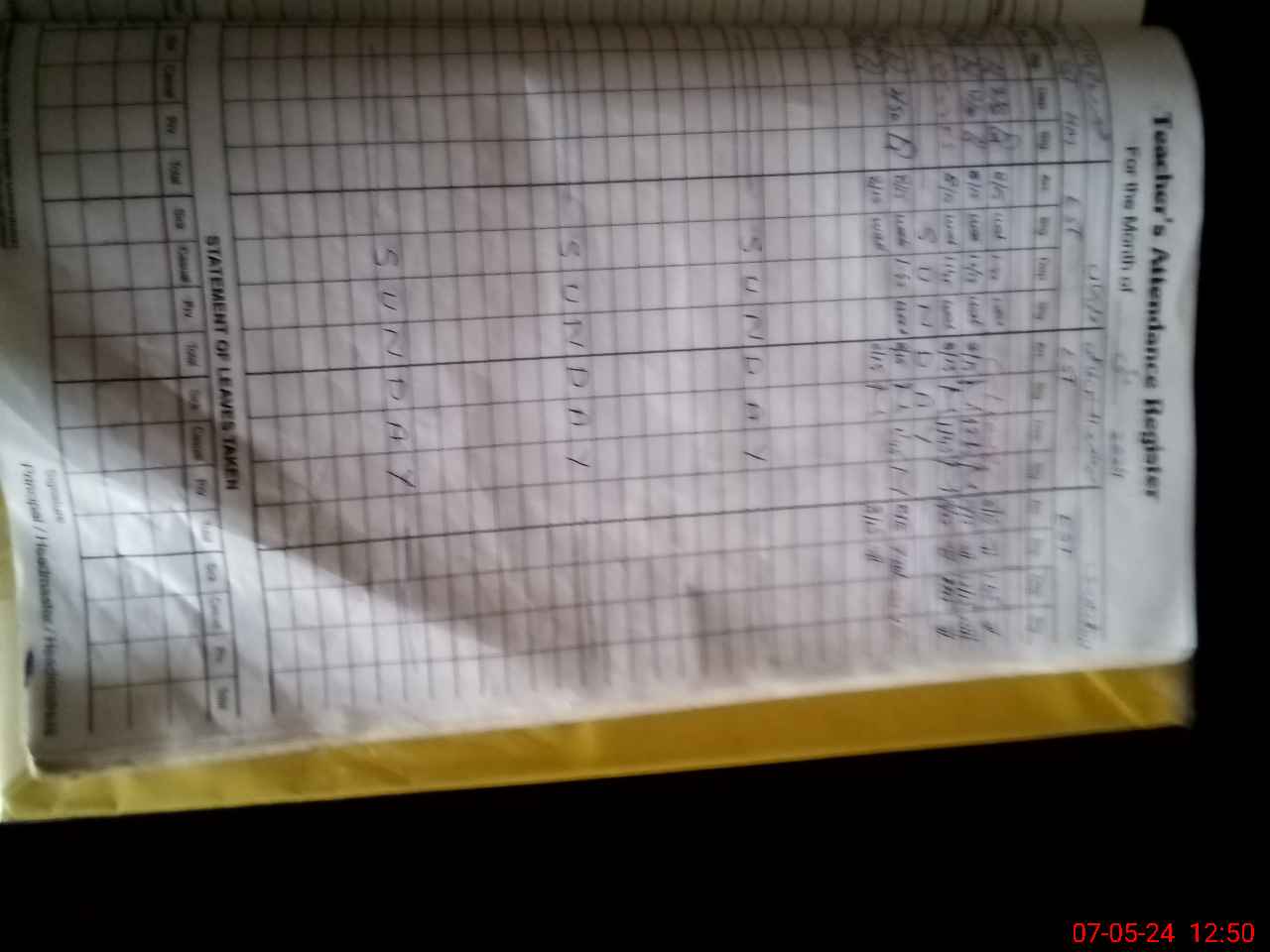 | 35**** | Gh**** Mu**** | 1 | 1 | 0 | 0 | 0 | 0 | 0 | 0 | 0 | 0 | 0 | Exam Duty |