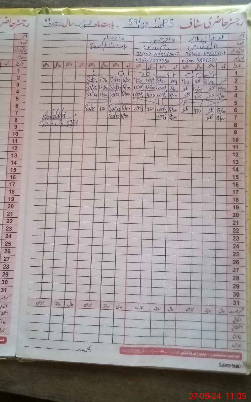 | Name: ZA**** IQ**** TA**** Designation: (School Headmaster's/Headmistress's) PST Phone/Cell Number: 03**** |