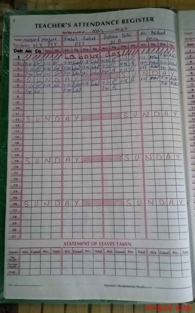 | Name: MU**** MA**** Designation: (School Headmaster's/Headmistress's) PST Phone/Cell Number: 03**** |