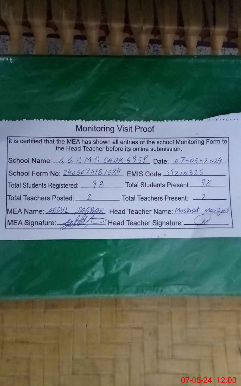 | EMIS Code: 39210325 | Name of School: GGCMS CHAK 59 SP | |||