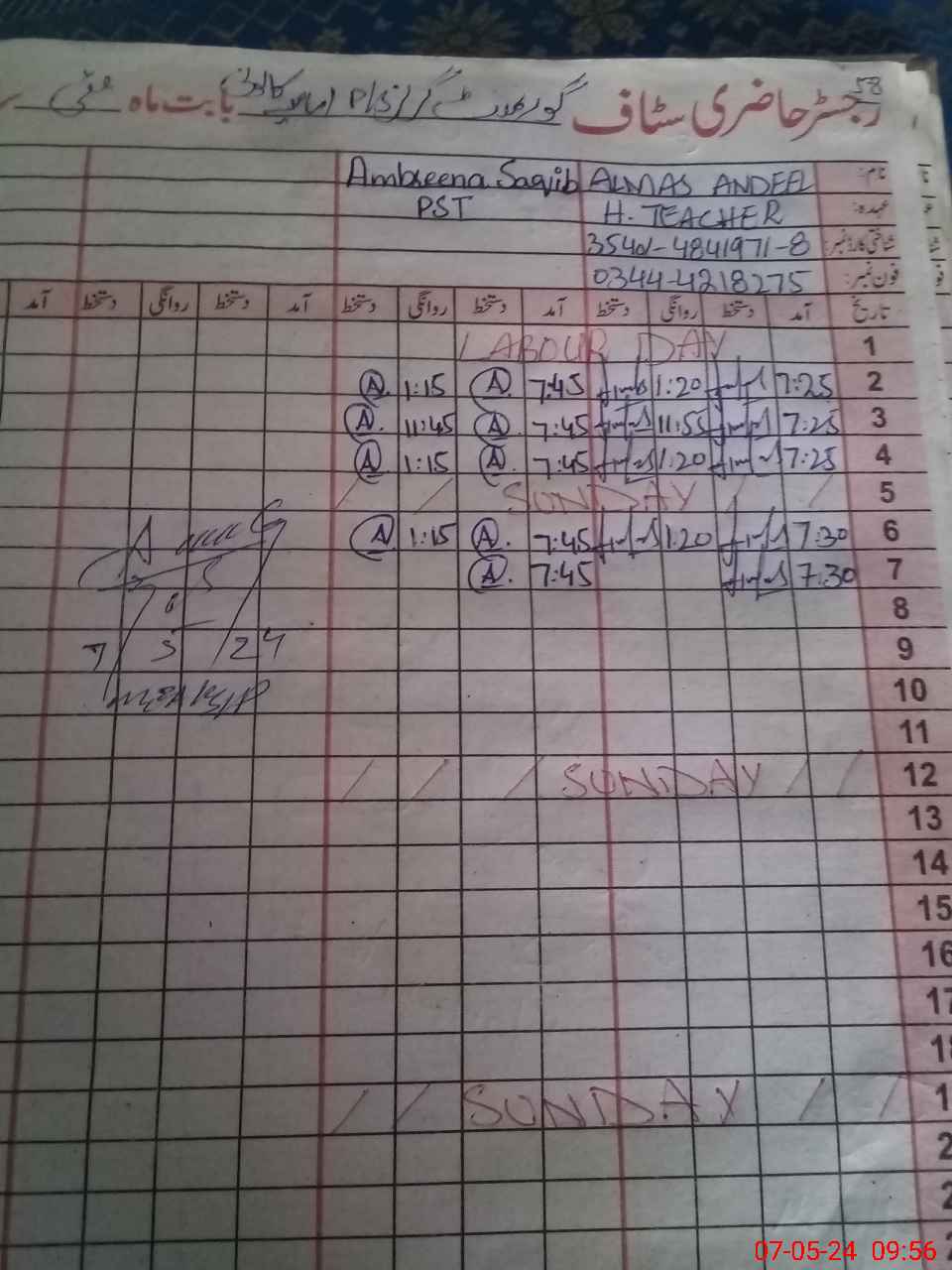 | Name: AL**** AN**** Designation: (School Headmaster's/Headmistress's) PST Phone/Cell Number: 03**** |