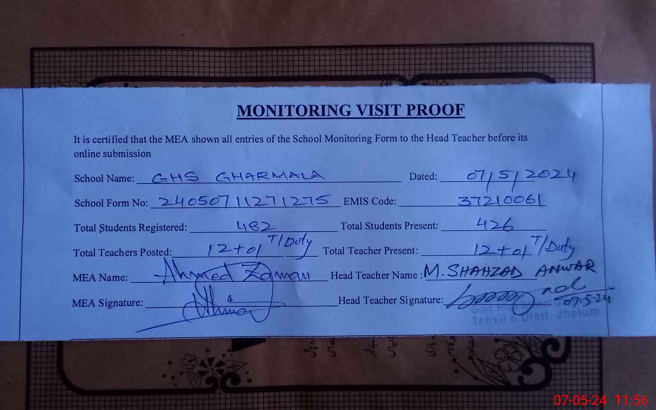 | EMIS Code: 37210061 | Name of School: GHS GHARMALA | |||