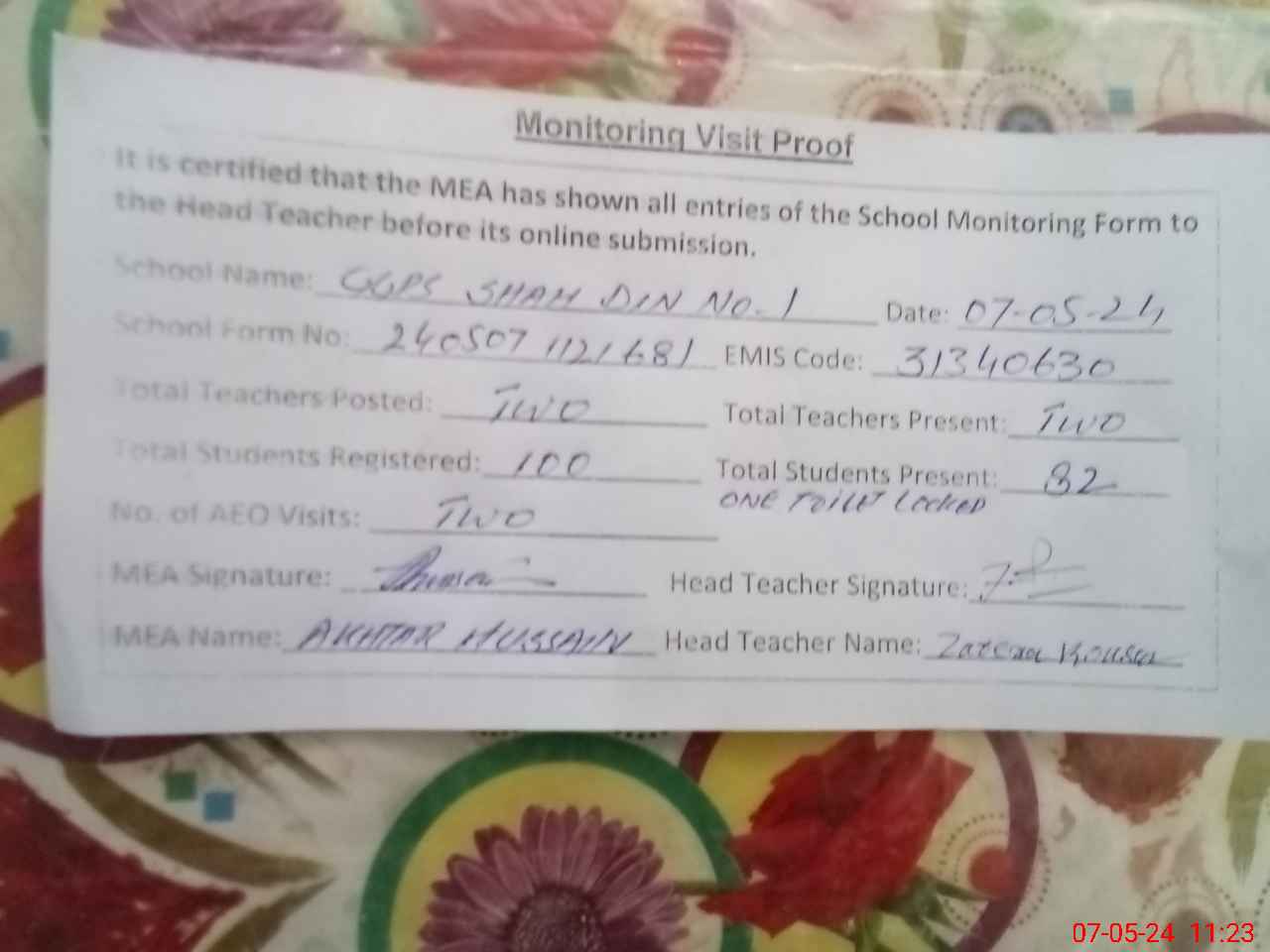 | EMIS Code: 31340630 | Name of School: GGPS SHAH DIN NO.1 | |||