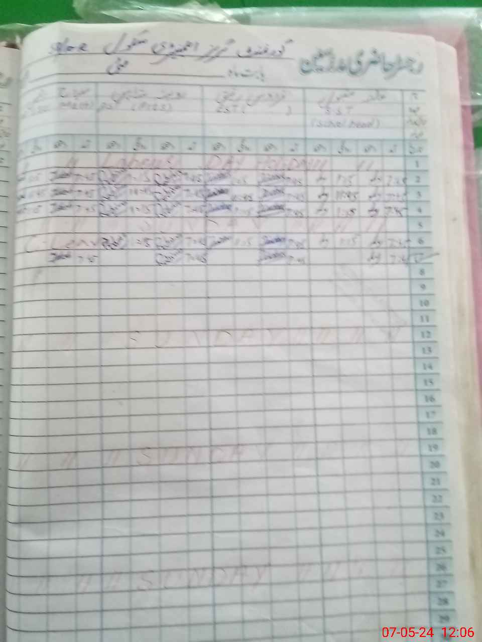 | CNIC | Full Name | Designation | R/C | Absence During Last Calender Month |