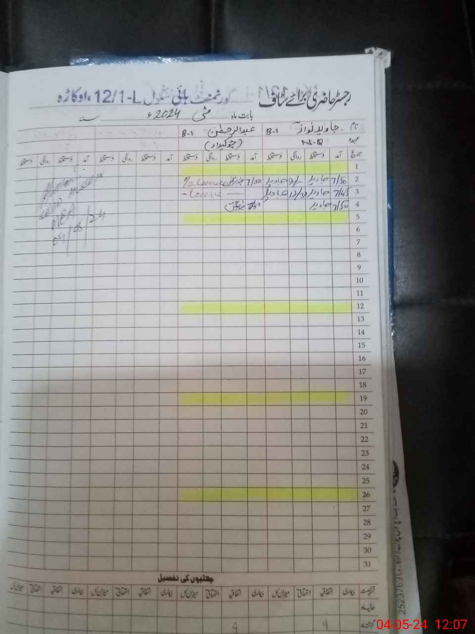 | CNIC | Full Name | Designation | R/C | Absence During Last Calender Month |