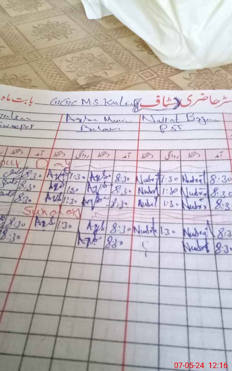 | CNIC | Full Name | Designation | R/C | Absence During Last Calender Month |