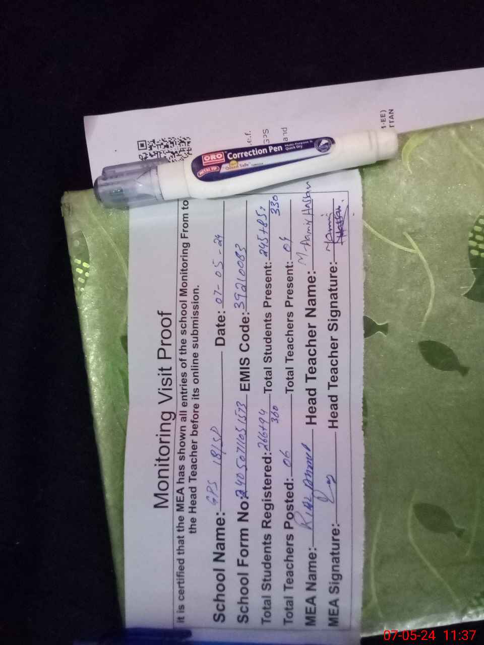 | Certified that this School was Inspected by the Undersigned MEA/DMO Today and the Information Stated Above is as Per Record. | |||||