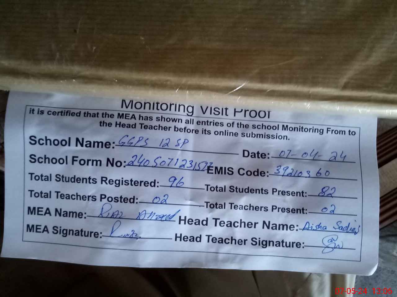 | EMIS Code: 39210360 | Name of School: GGPS 12 SP | |||