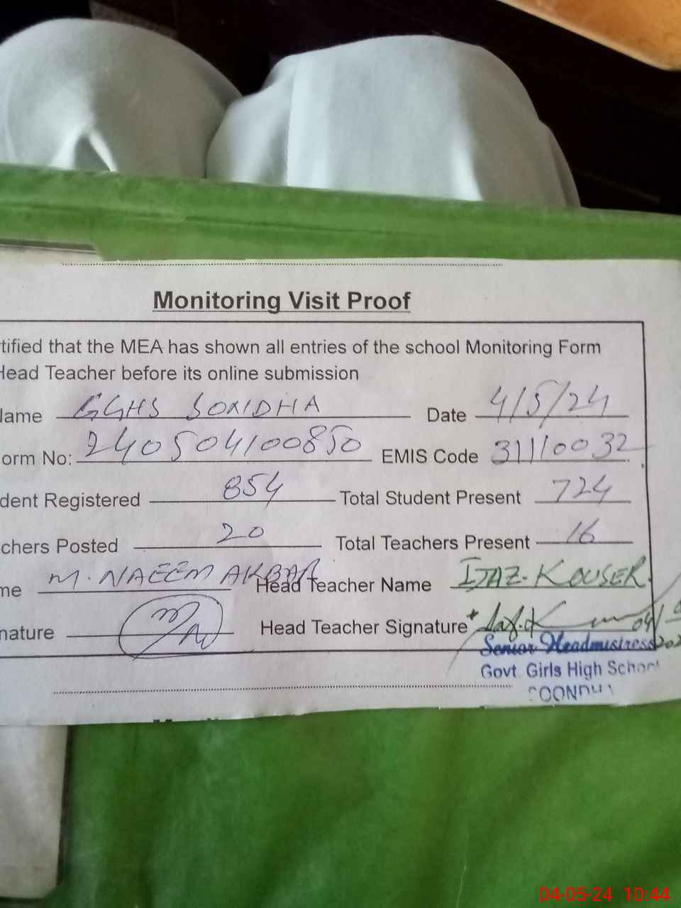 | EMIS Code: 31110032 | Name of School: GGHS SONDHA | |||