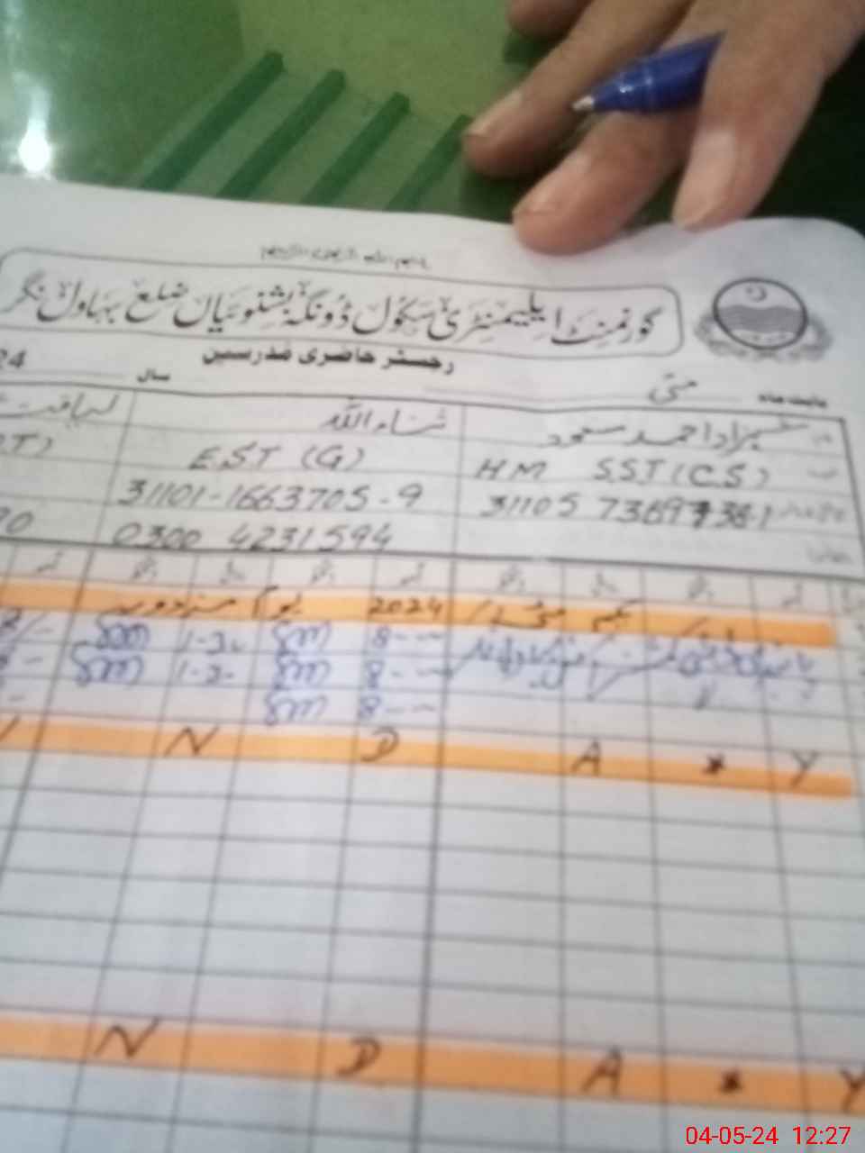 | Name: AbRa**** Designation: (School Headmaster's/Headmistress's) EST HT Phone/Cell Number: 03**** |