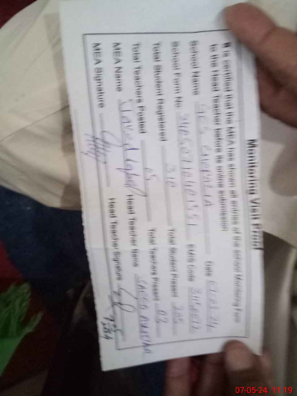 | Attendance Register | Head Teacher | MEA with School | Visit Proof |