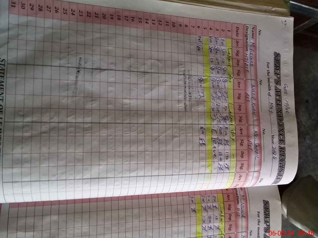 | CNIC | Full Name | Designation | R/C | Absence During Last Calender Month |