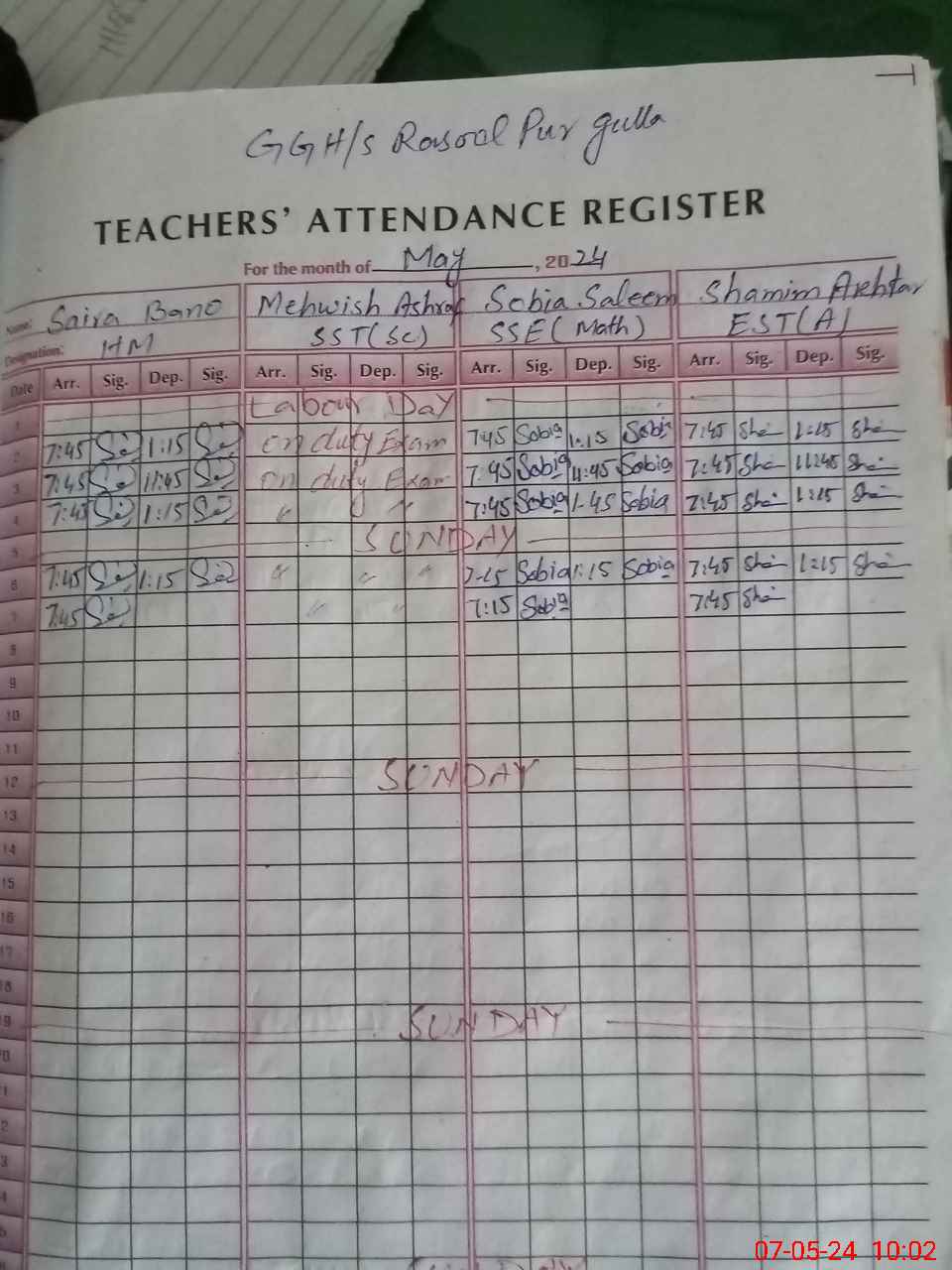 | 36**** | Me**** As**** | SST | Regular | 0 | 0 | 0 | 0 | 0 | 0 | 0 | 0 | 0 | Exam Duty |