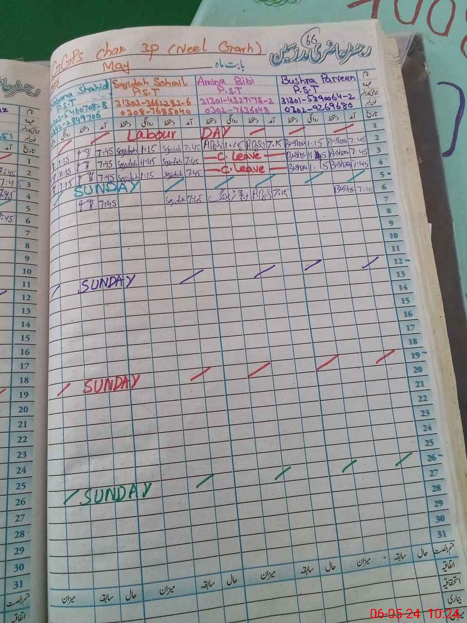 | Leave | Duty | Absent | Maternity | Medical | Ex- Pak |