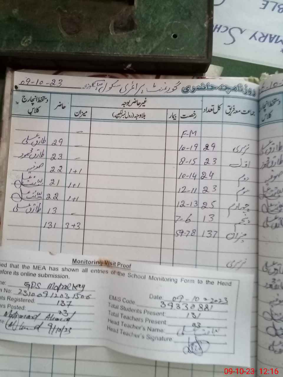| EMIS Code: 39330881 | Name of School: GPS MOPAL KEY | |||