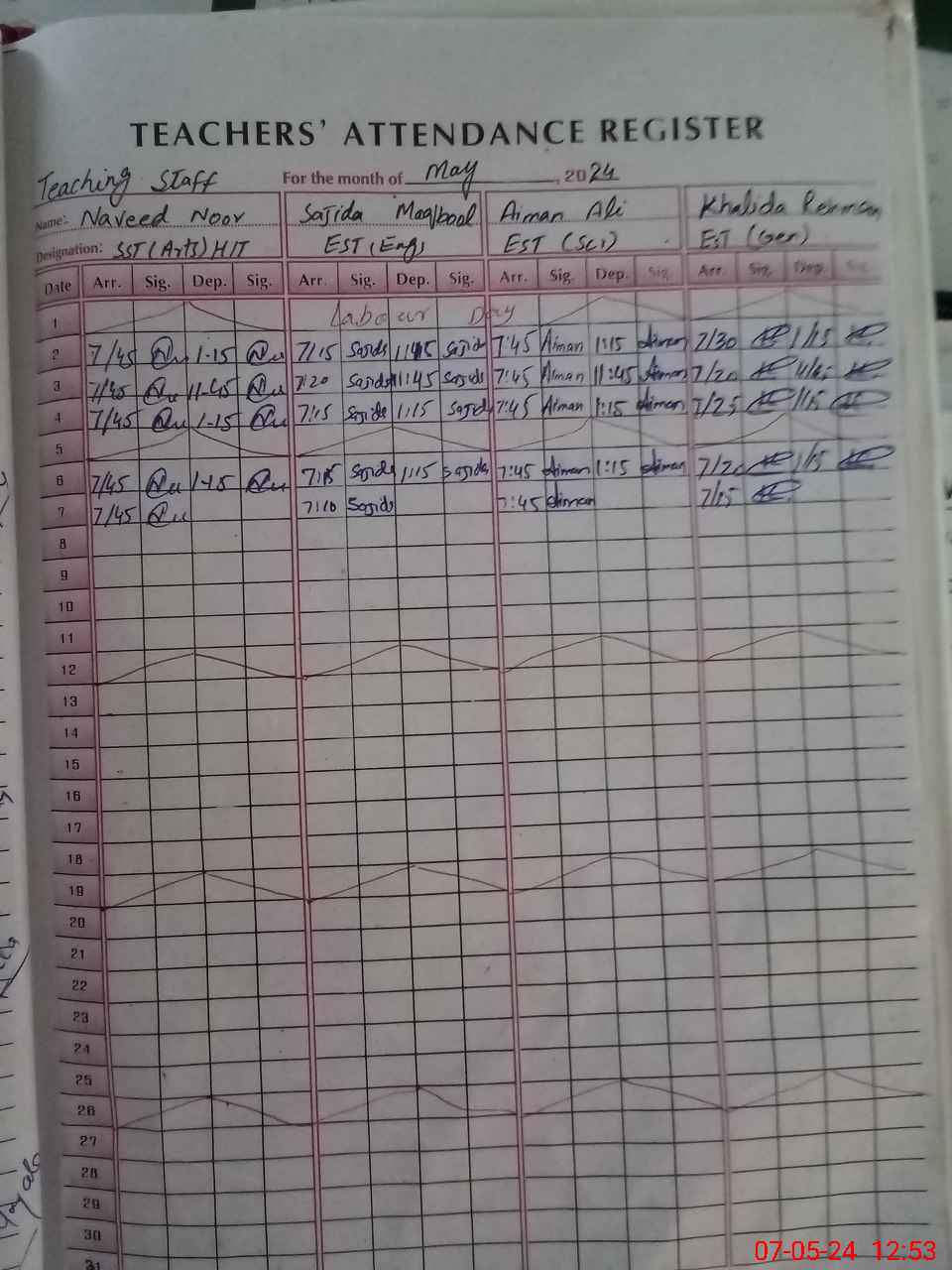 | CNIC | Full Name | Designation | R/C | Absence During Last Calender Month |