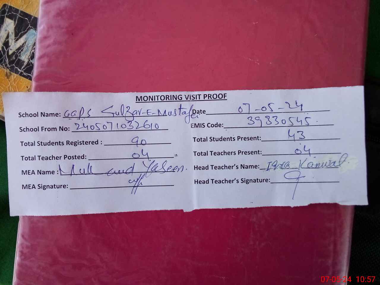 | EMIS Code: 39330545 | Name of School: GGPS GULZAR E MUSTAFA | |||