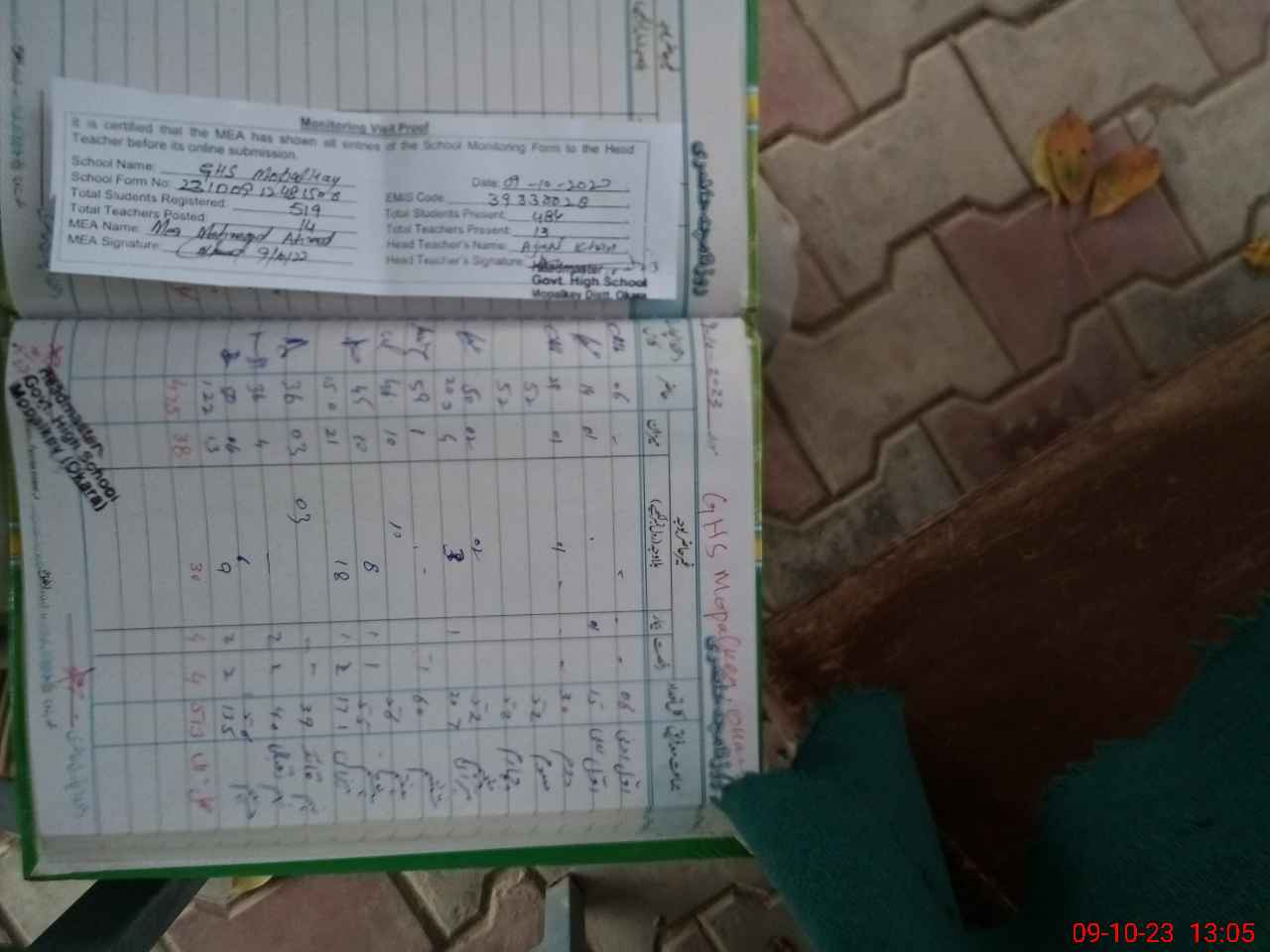 | Attendance Register | Head Teacher | MEA with School | Visit Proof |
