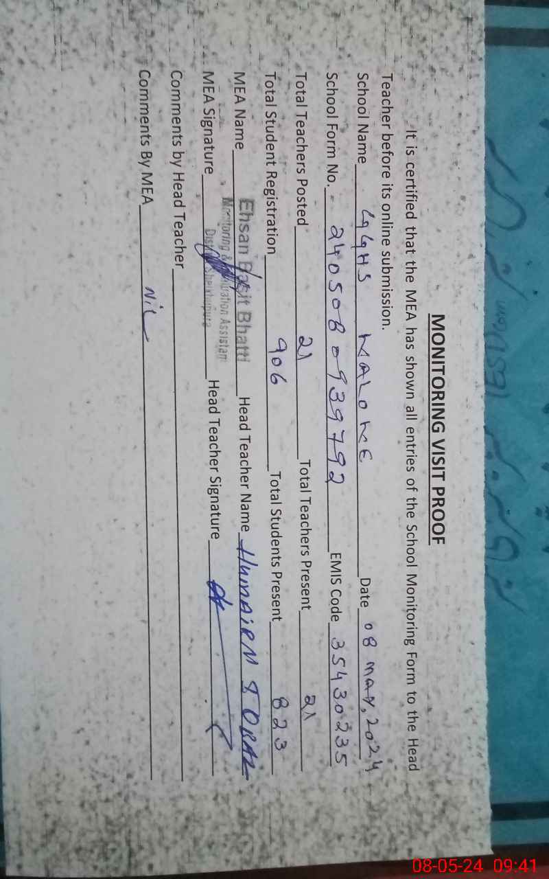 | EMIS Code: 35430235 | Name of School: GGHS KALOKE | |||