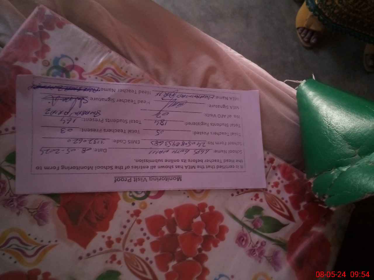 | Certified that this School was Inspected by the Undersigned MEA/DMO Today and the Information Stated Above is as Per Record. | |||||