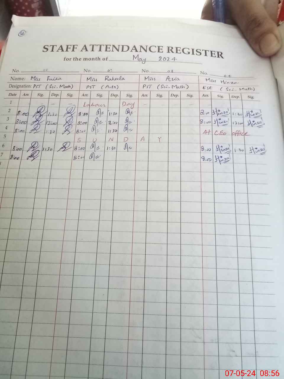 | CNIC | Full Name | Designation | R/C | Absence During Last Calender Month |