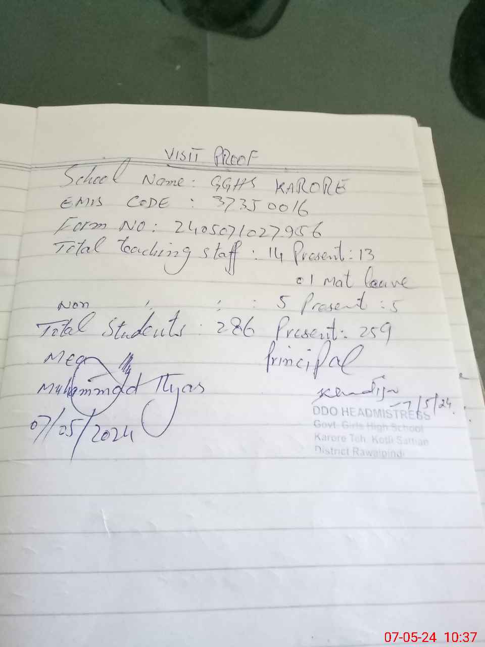 | EMIS Code: 37350016 | Name of School: GGHS KARORE | |||