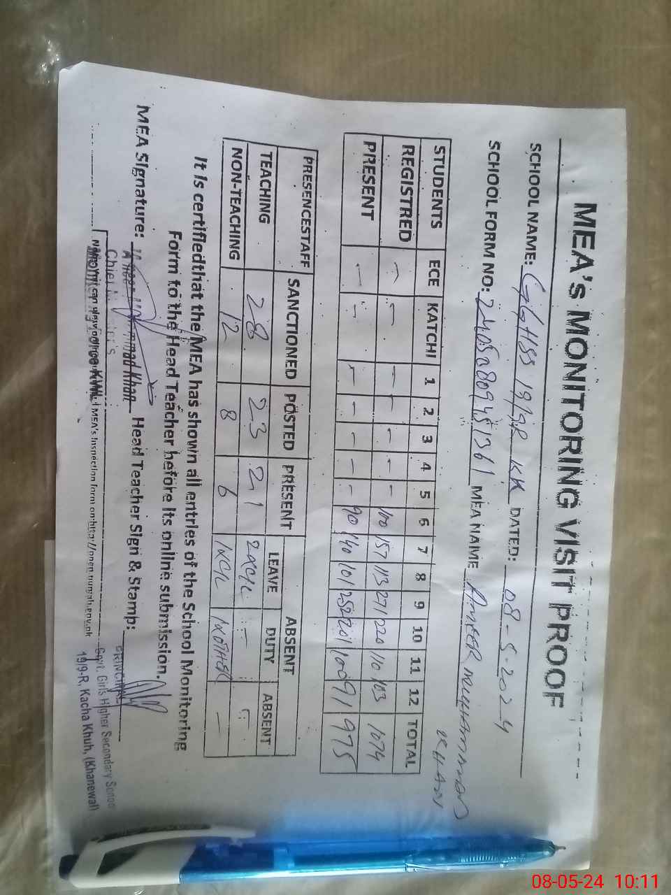 | EMIS Code: 36420054 | Name of School: GGHSS 19/9-R, KACHA KHUH | |||