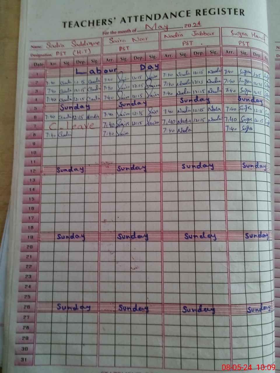 | Leave | Duty | Absent | Maternity | Medical | Ex- Pak |