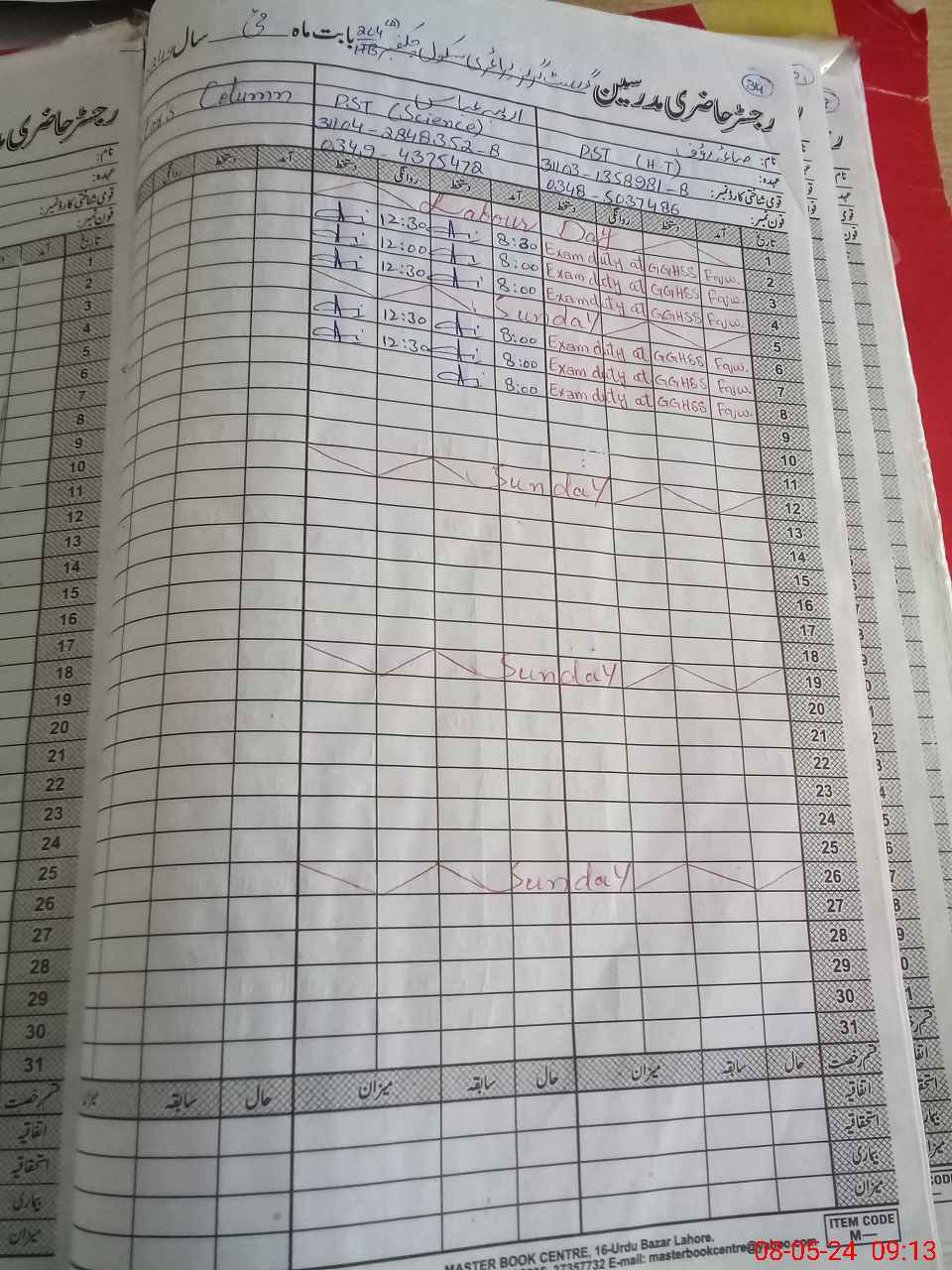 | 31**** | Sa**** Ra**** | PST | Regular | 0 | 0 | 0 | 0 | 0 | 0 | 0 | 0 | 0 | Exam Duty |