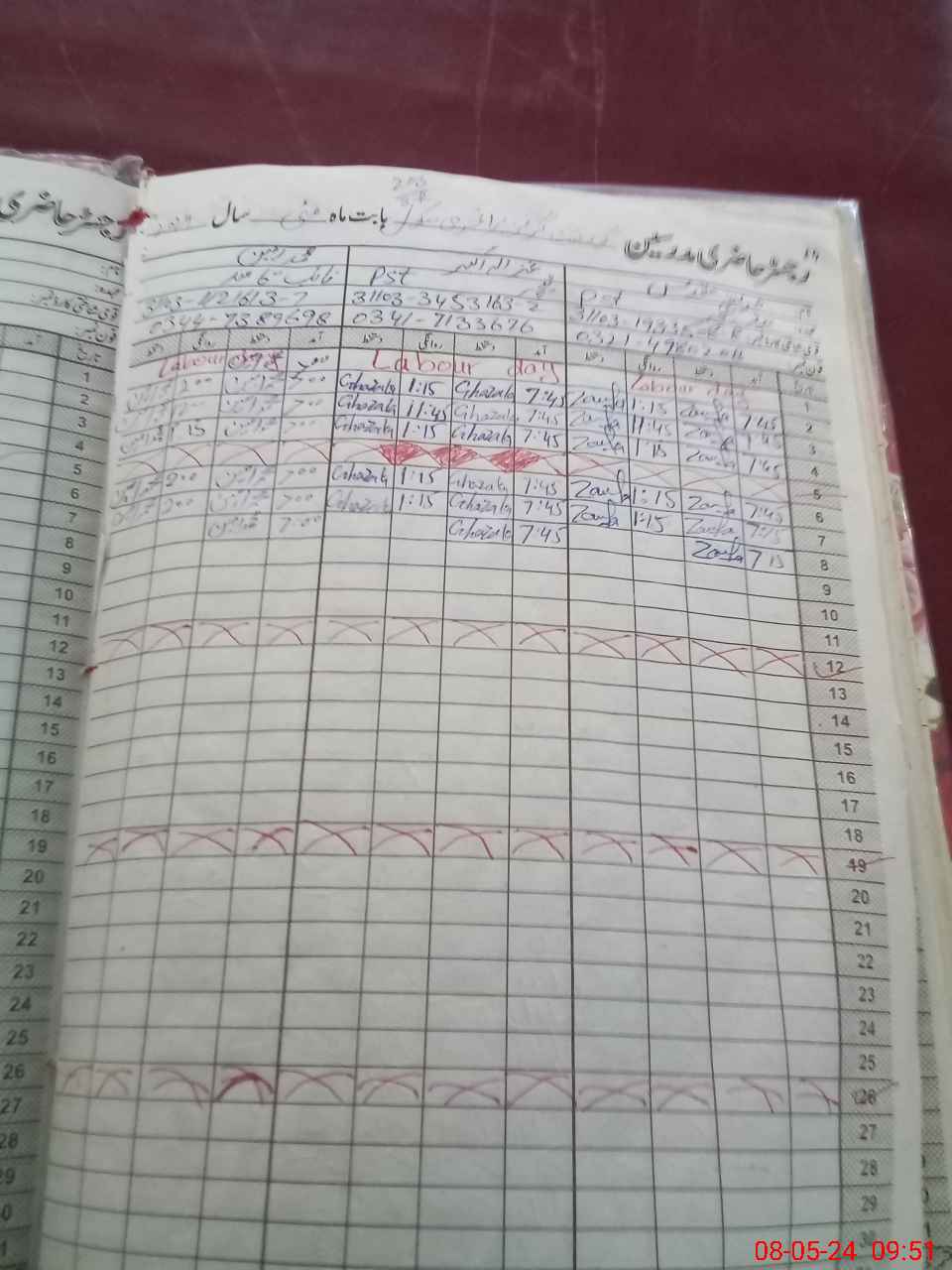 | CNIC | Full Name | Designation | R/C | Absence During Last Calender Month |