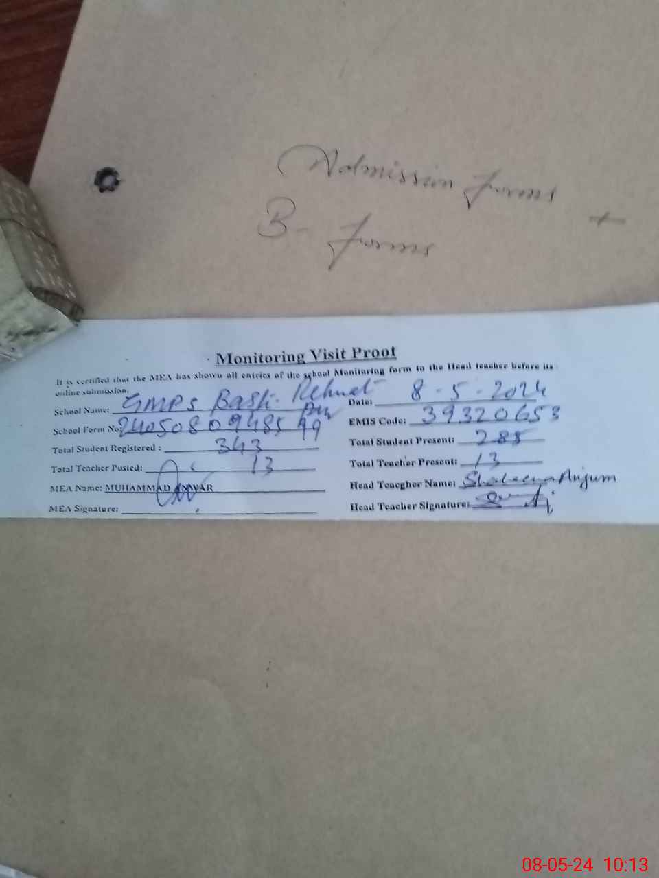 | Attendance Register | Head Teacher | MEA with School | Visit Proof |