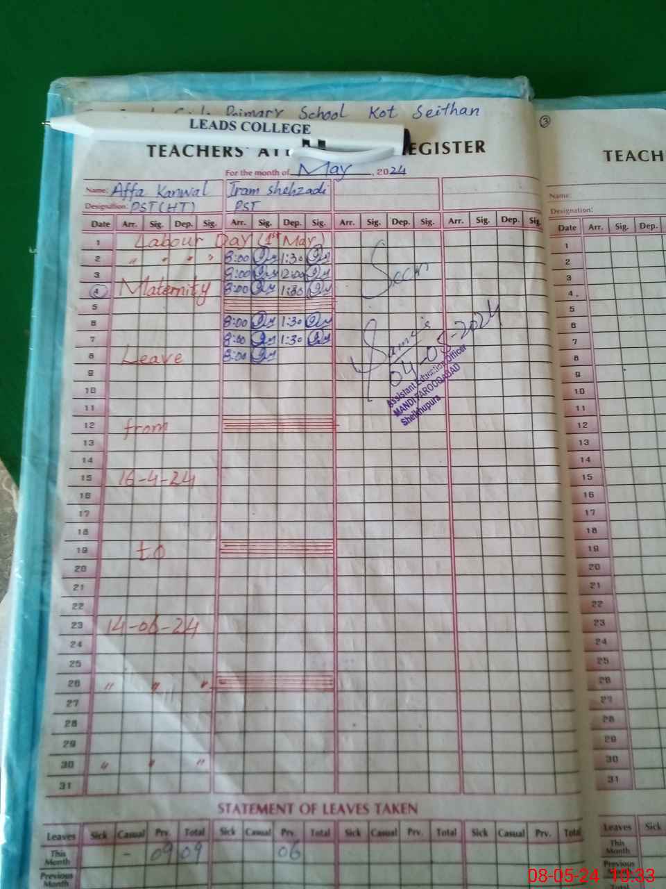 | 35**** | Af**** Ka**** | PST | Regular | 0 | 0 | 0 | 0 | 0 | 0 | 0 | 0 | 0 | Maternity |