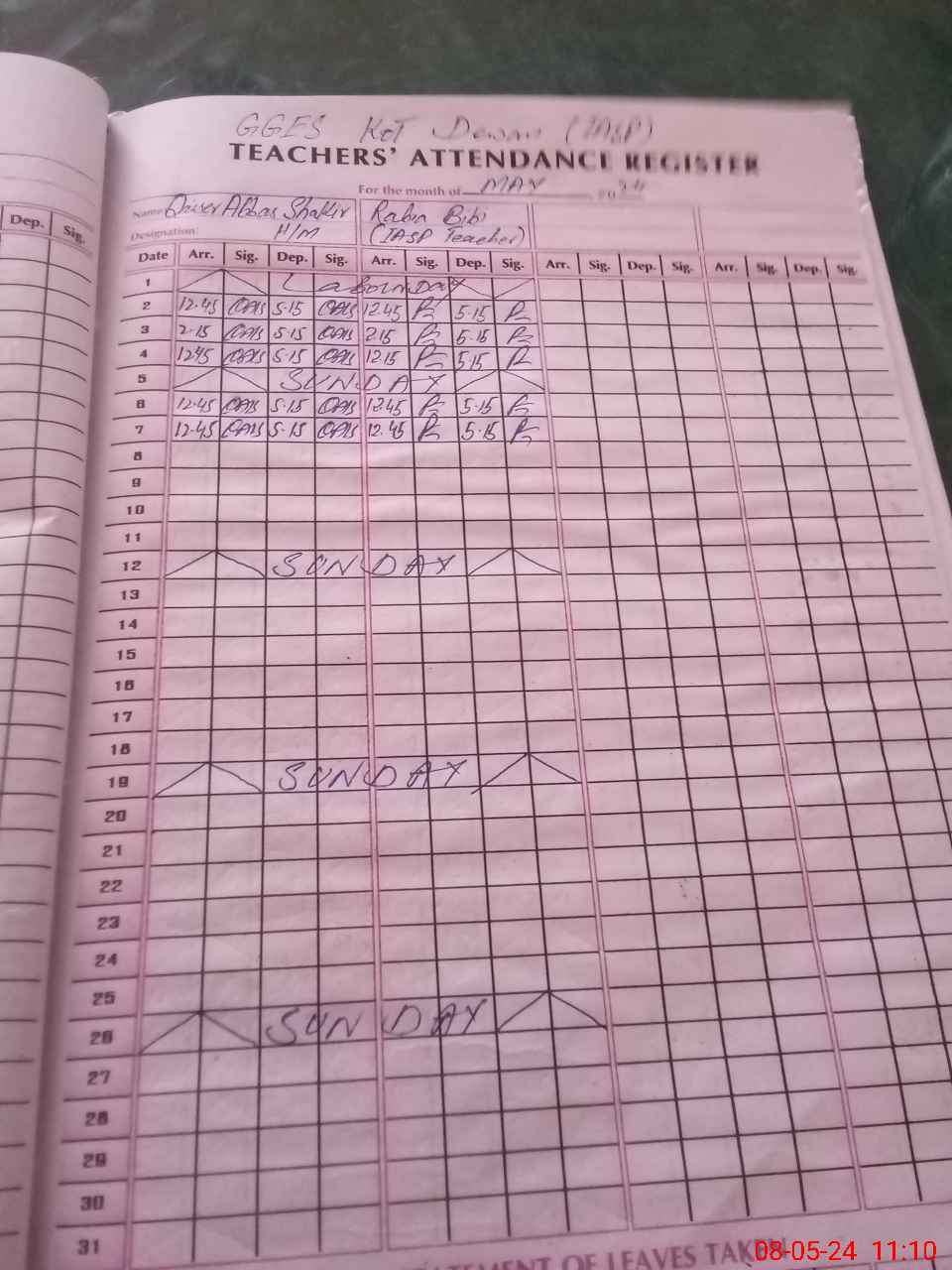 | Name: QA**** AB**** SH**** Designation: (School Headmaster's/Headmistress's) PST Phone/Cell Number: 03**** |