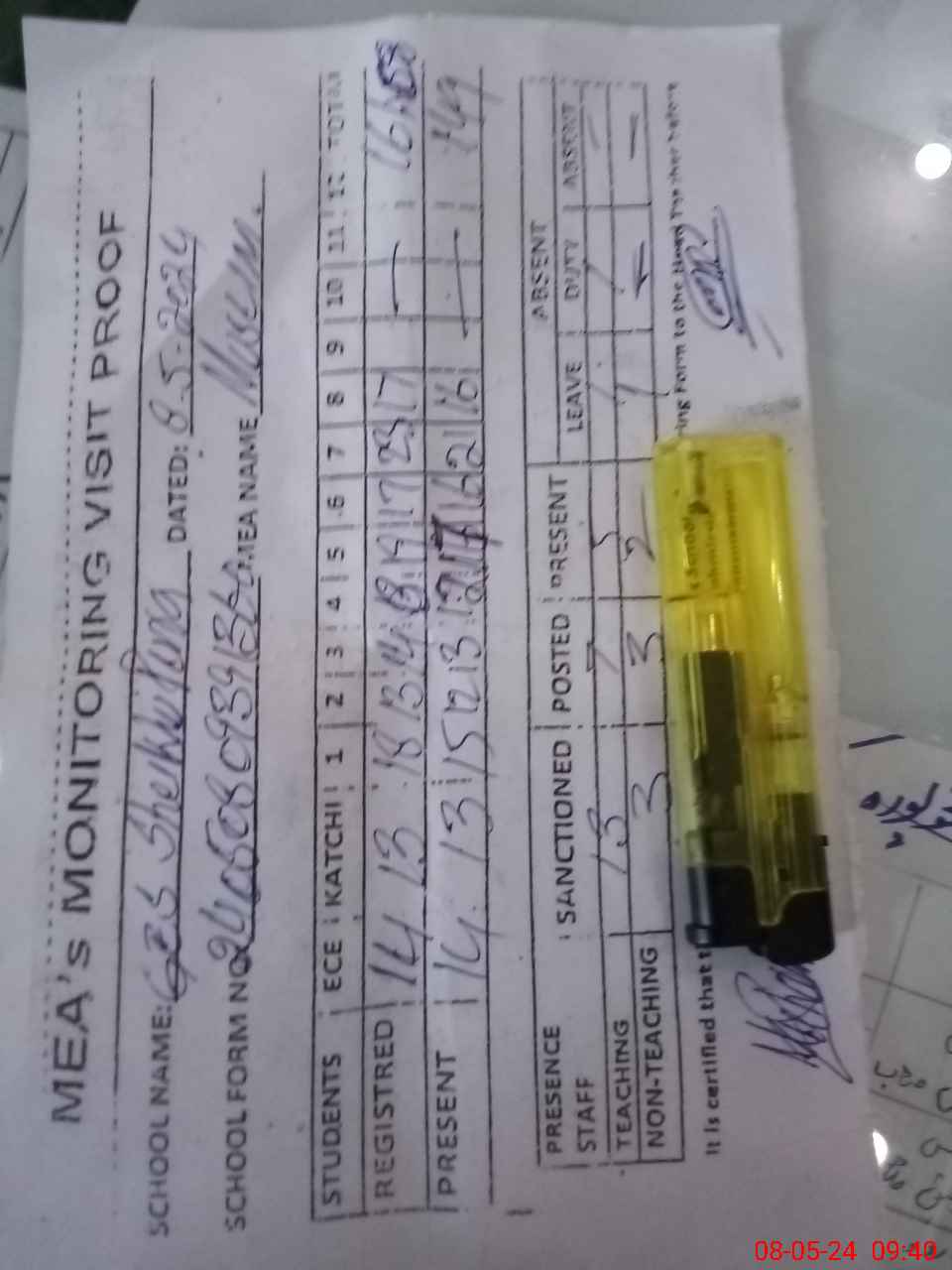 | Attendance Register | Head Teacher | MEA with School | Visit Proof |