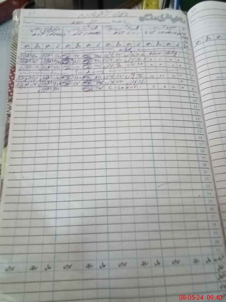 | CNIC | Full Name | Designation | R/C | Absence During Last Calender Month |