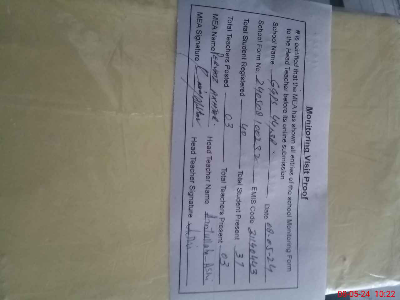 | Certified that this School was Inspected by the Undersigned MEA/DMO Today and the Information Stated Above is as Per Record. | |||||