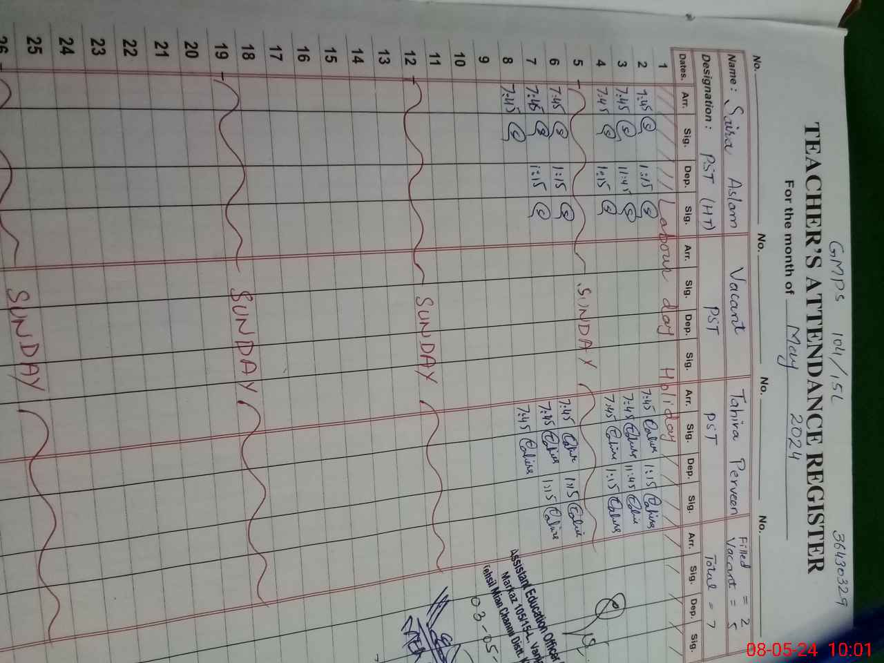 | Name: Sa**** As**** Designation: (School Headmaster's/Headmistress's) PST Phone/Cell Number: 03**** |