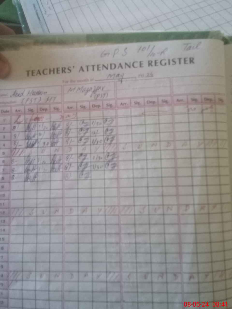 | Name: Ab**** Hu**** Wa**** Designation: (School Headmaster's/Headmistress's) PST Phone/Cell Number: 03**** |