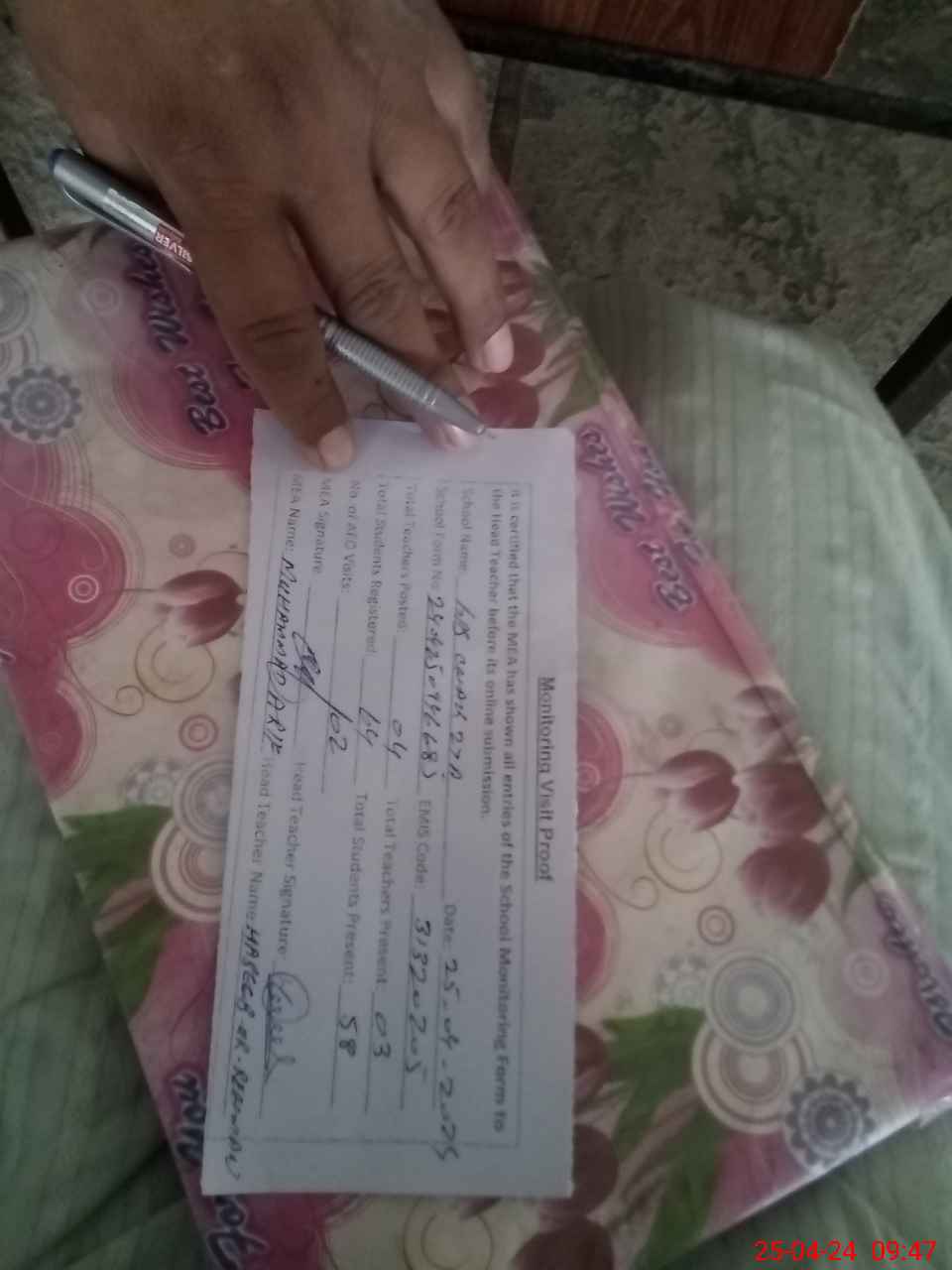 | Certified that this School was Inspected by the Undersigned MEA/DMO Today and the Information Stated Above is as Per Record. | |||||