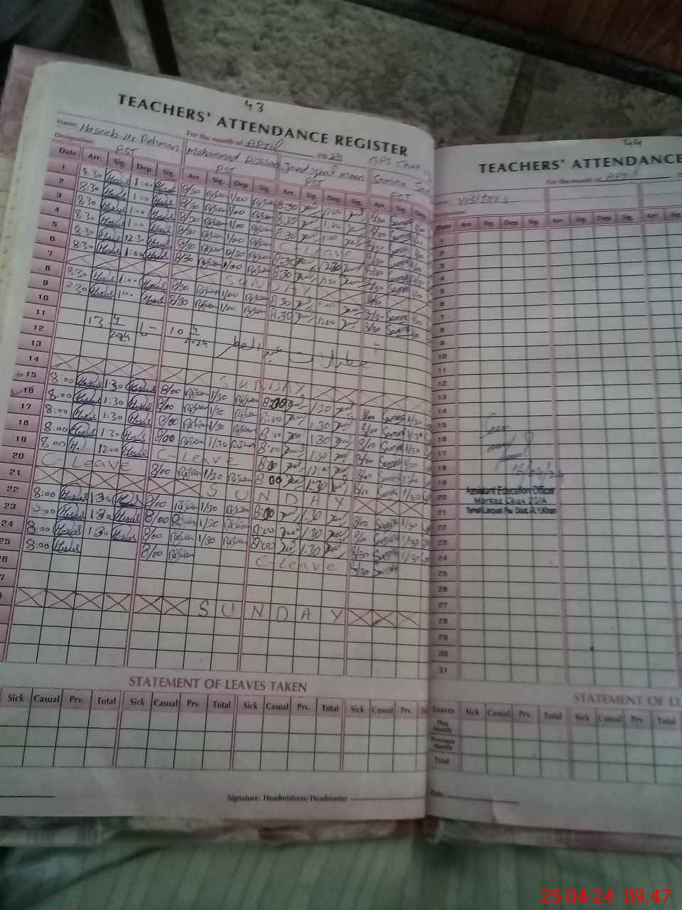 | Name: MU**** RI**** Designation: (School Headmaster's/Headmistress's) PST Phone/Cell Number: 03**** |