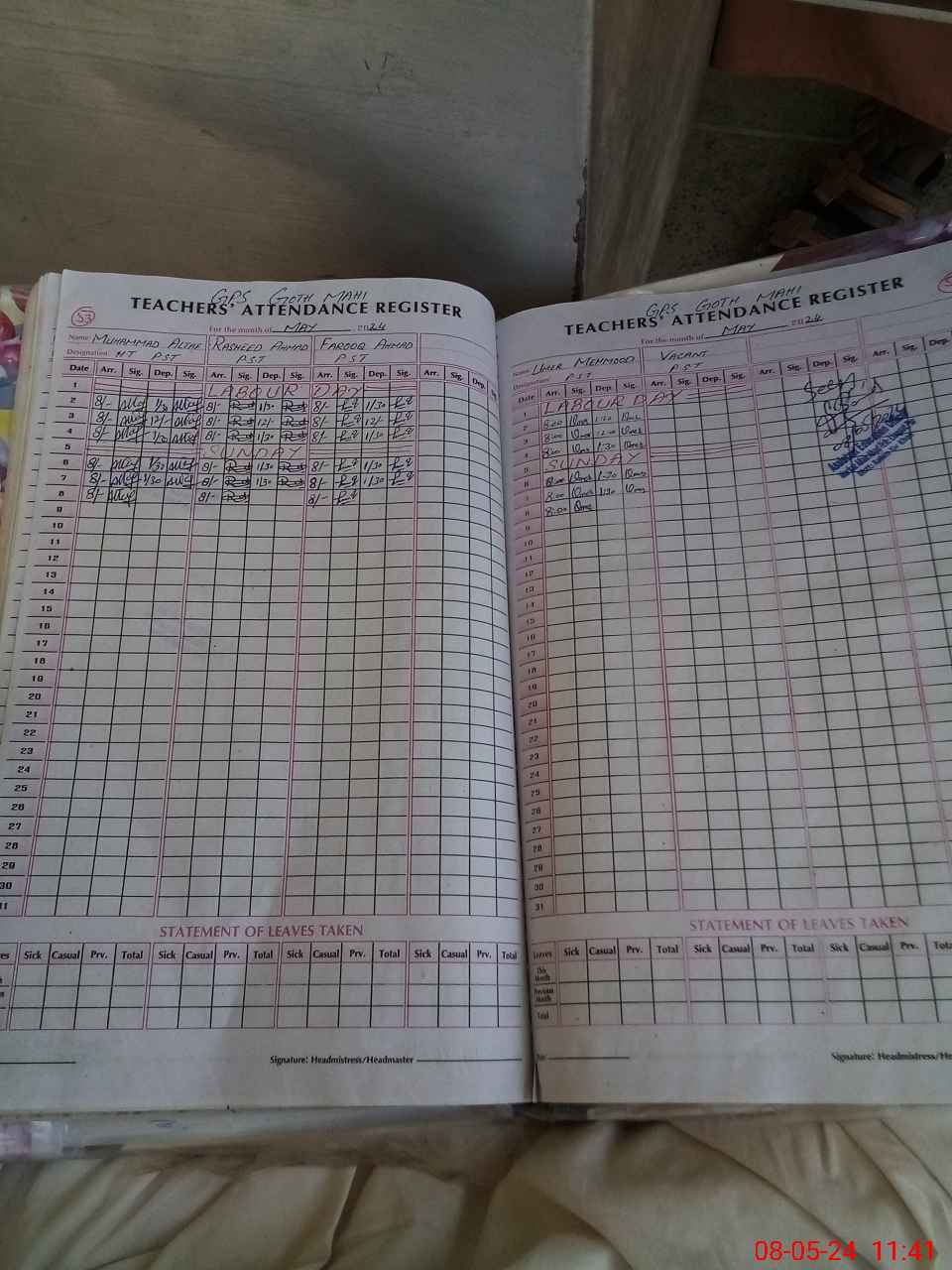 | Name: UM**** MA**** Designation: (School Headmaster's/Headmistress's) PST Phone/Cell Number: 03**** |