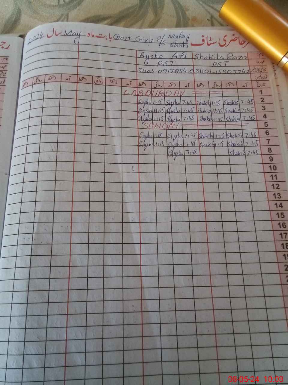 | Name: Ay**** Al**** Designation: (School Headmaster's/Headmistress's) PST Phone/Cell Number: 03**** |
