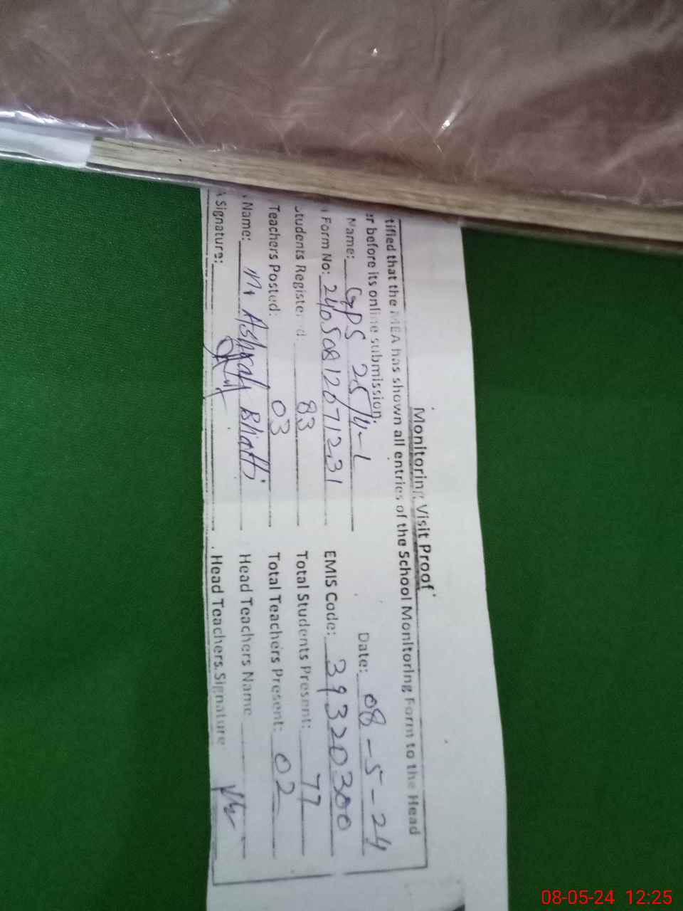 | Name: KH**** SH**** Designation: (School Headmaster's/Headmistress's) PST Phone/Cell Number: 03**** |