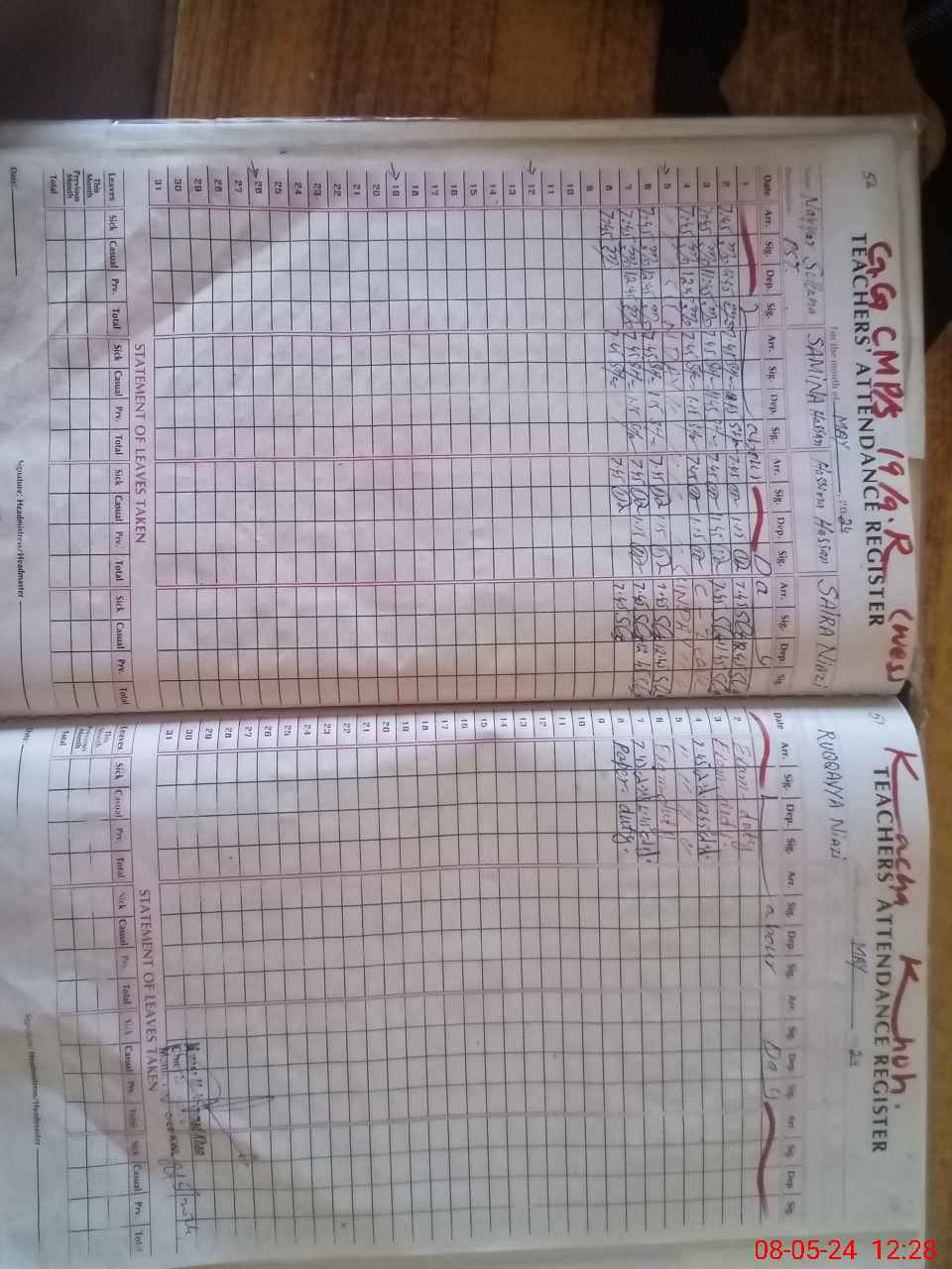 | Remarks (Use Separate Page if Required): After noon shift students strength is 61 and teacher are four | |||||