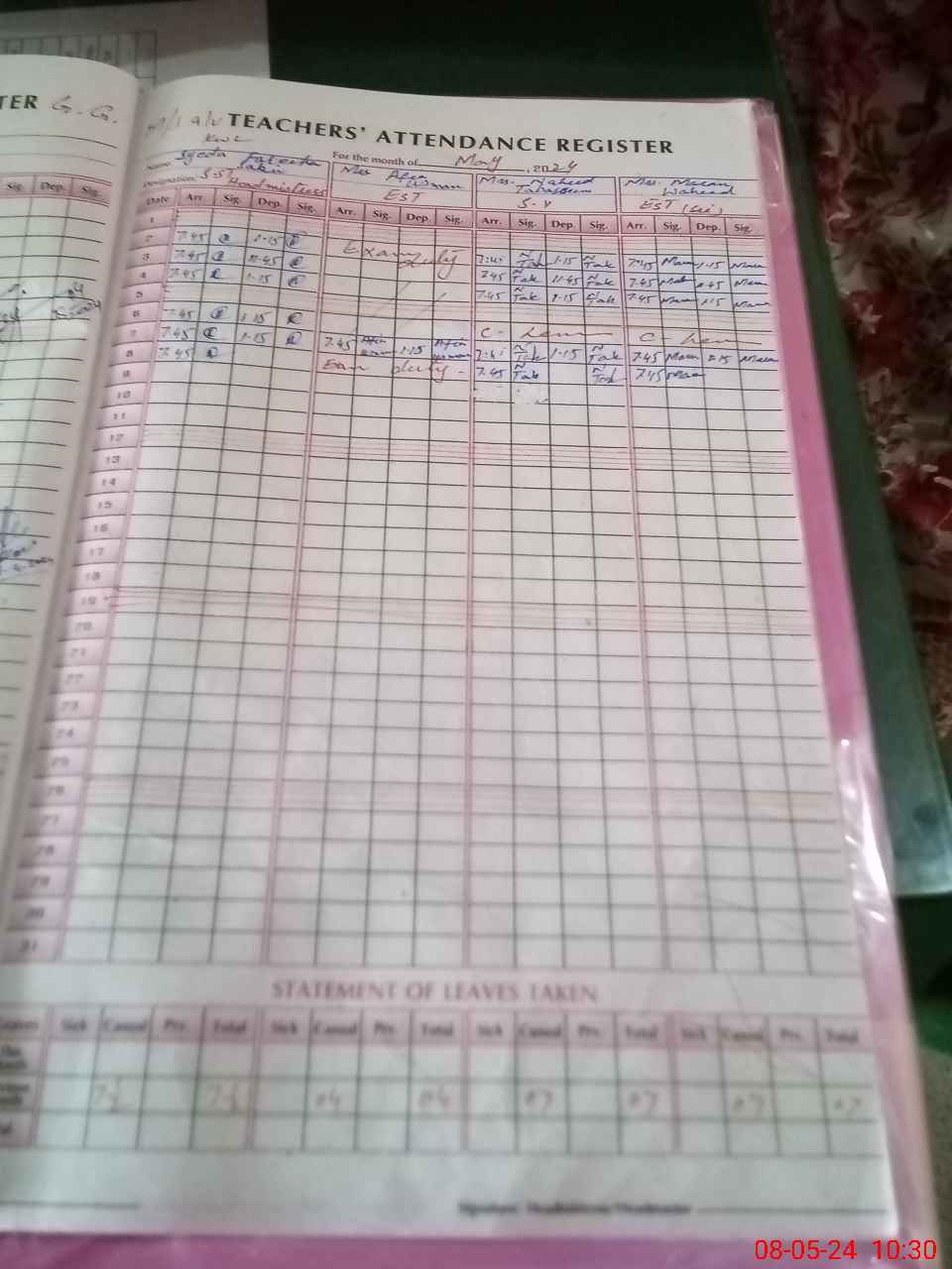 | 36**** | Af**** Us**** | 1 | 2 | 14 | 0 | 0 | 0 | 0 | 0 | 0 | 2 | Exam Duty | |