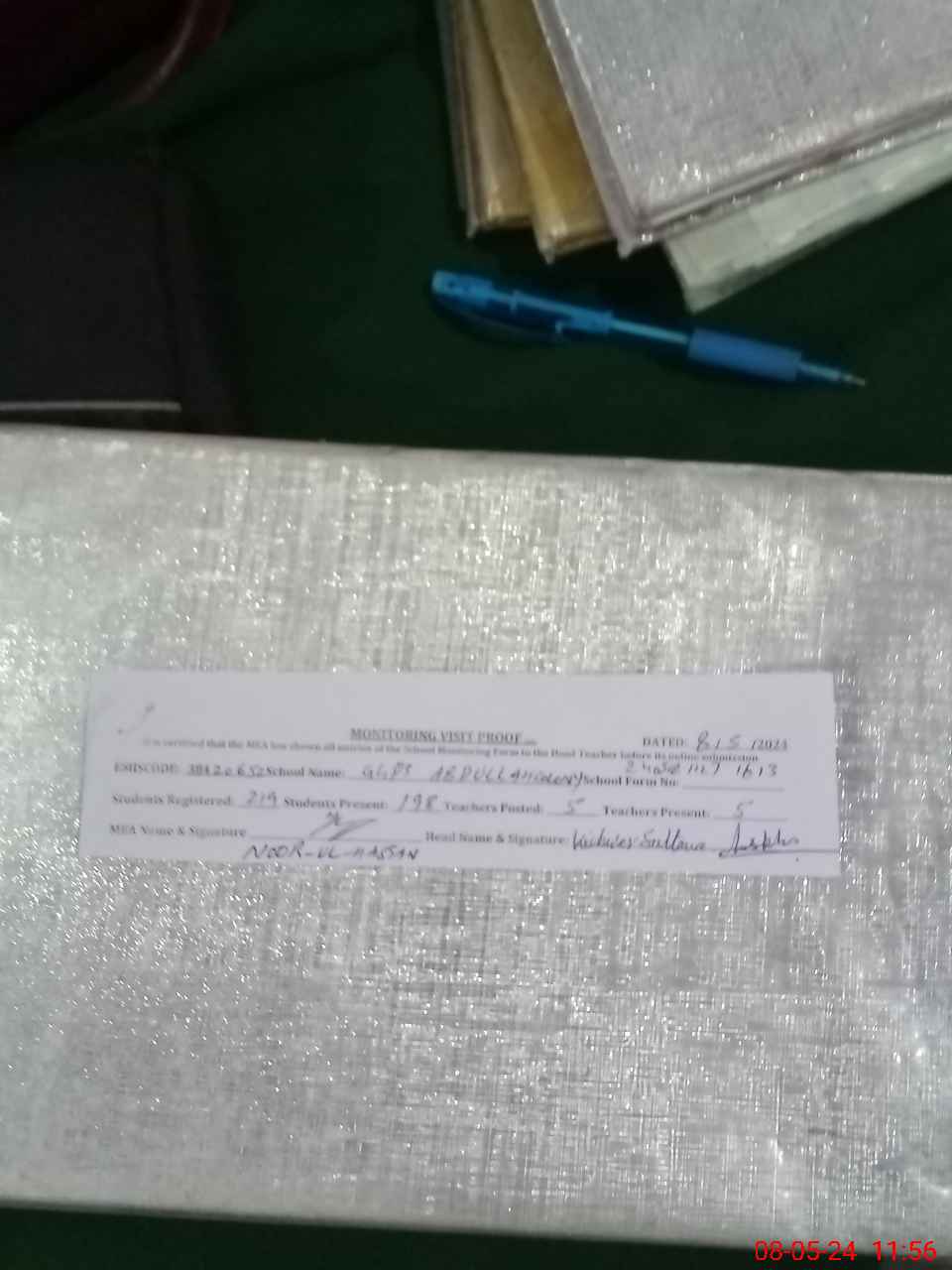 | Attendance Register | Head Teacher | MEA with School | Visit Proof |