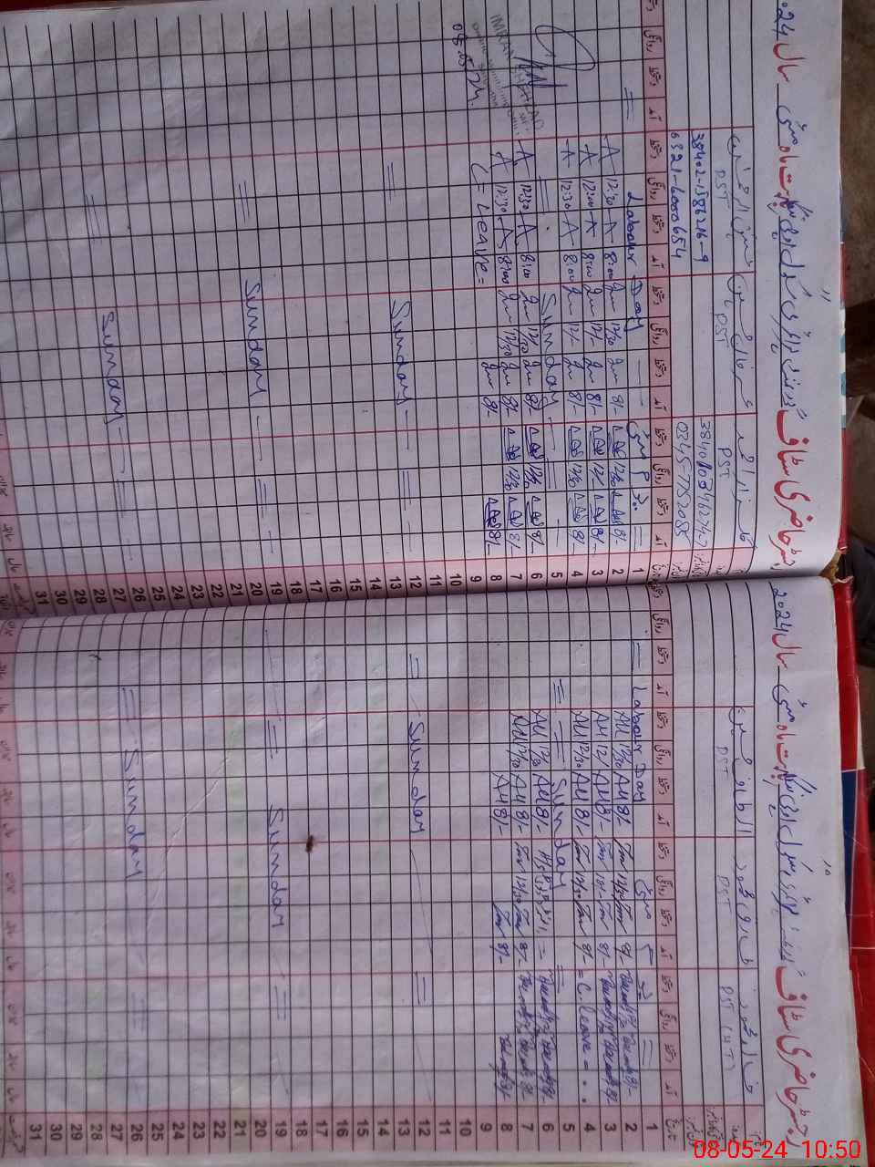 | CNIC | Full Name | Designation | R/C | Absence During Last Calender Month |